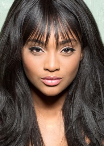 Если волосы большой длины являются весьма пышными и волнистыми, представляют собой шикарные локоны, то здесь будет уместна аккуратная филированная челка чуть выше линии бровей. При таком решении нелишним окажется незначительный объем в области макушки или на боковых участках копны.