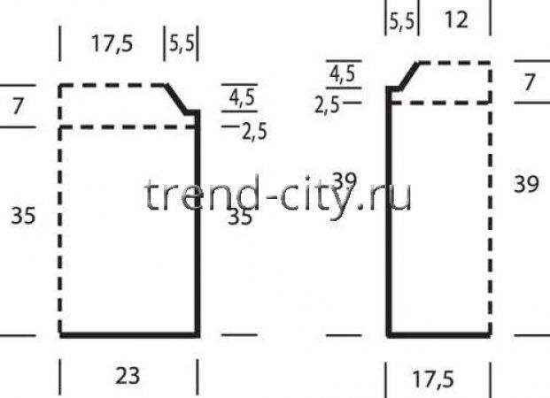 Для скоса плеча закройте с боковой стороны в каждом 2-м ряду 1 раз х 5 п. и 2 раза х 4 п. (2 раза х 5 п. и 1 раз х 4 п.)3 раза х 5 п.(1 раз х 6 п. и 2 раза х 5 п.)1 раз х 6 п. и 2 раза х 5 п.
