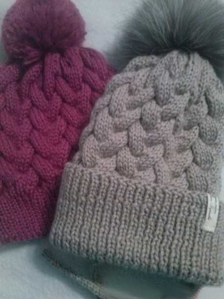 Женская шапка с красивым узором косы может быть с помпоном, сделанным как из ниток, так и из натурального меха. Кроме этого, по желанию рукодельницы, ее можно сделать с отворотом или без него.