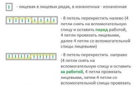 Совет: Чтобы не сбиться со счета при вязании рядов от одного перекрещивания до другого, можно использовать специальные маркеры.